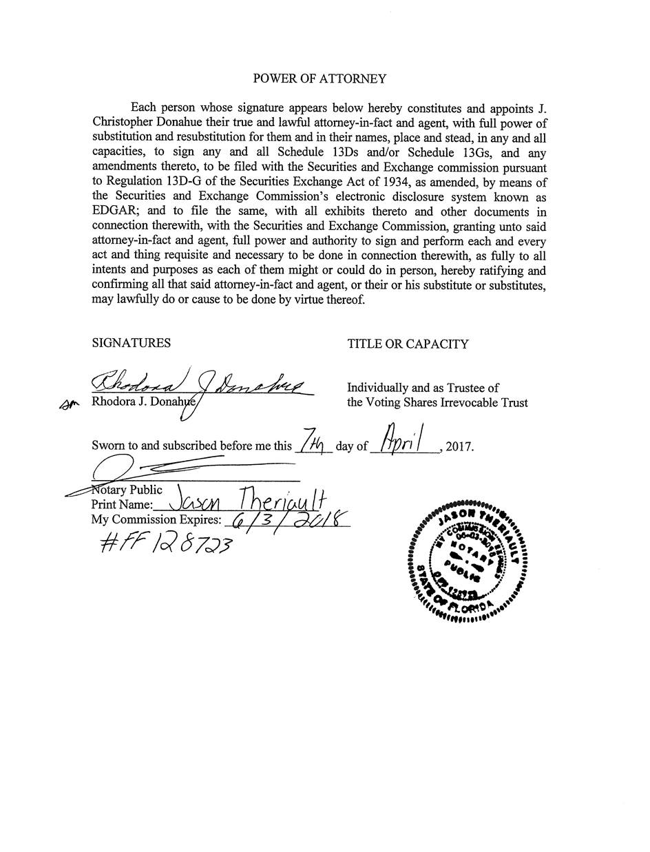 | Name/Title: | Rhodora J. Donahue, individually and as Trust of Voting Shares Irrevocable Trust, by J. Christopher Donahue, as attorney-in-fact |