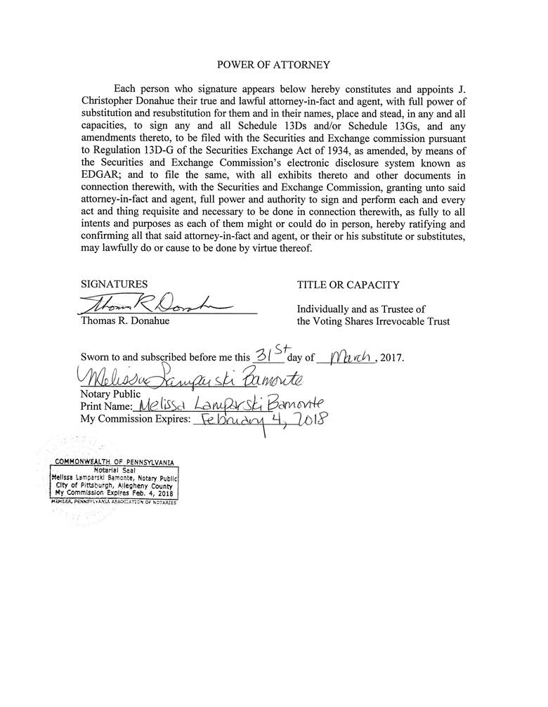 | Name/Title | Thomas R. Donahue, individually and as Trustee of Voting Shares Irrevocable Trust. |